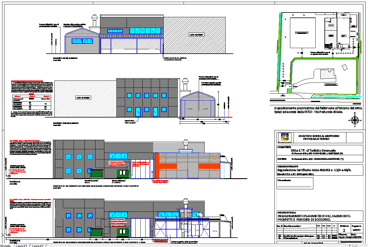 Executive drawing for a fire prevention process for two gpl air heating station from 192 kW to 225kW.